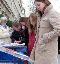 摩萨先生看到法轮功学员的摊位后就主动来签名,他觉的法轮功学员为制止迫害而努力非常好。他时不时的在报纸上读到法轮功学员被中共迫害的信息,他觉的法轮功学员只是有自己的人生信仰,于社会毫无害处,但是中共不允许有任何不同于它的群体。他签名表示自己对法轮功的支持。