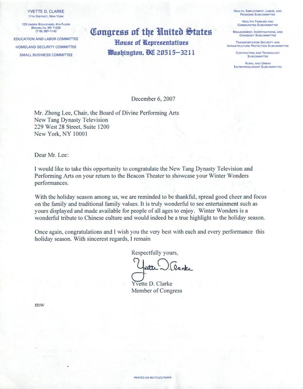 祝贺新唐人电视台和神韵艺术团再次在碧肯剧院演出圣诞晚会。