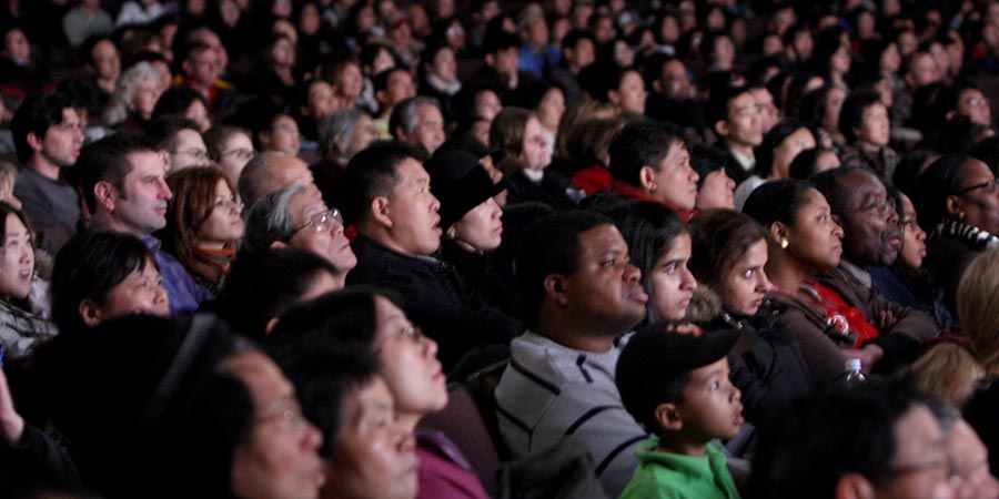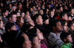 ![]() 新唐人纽约圣诞晚会平安夜下午场,聚精会神看节目的观众。 |