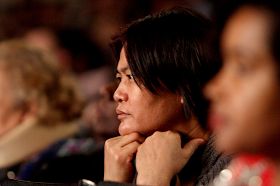 ![]() 二零零七年十二月二十四日,平安夜下午,碧肯剧院观众被纽约圣诞晚会深深吸引,看的入神。 |