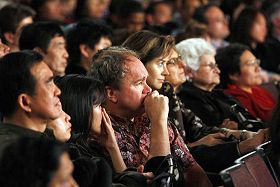 前来观看神韵演出的观众来不同种族、不同文化背景,以及来自五湖四海的各界华人;其中不少是世界杰出艺术家和文化界人士。每场结束时,都听到观众对晚会的赞誉如潮:“这是世界一流演出”,“美极了!”,“演出太好看了,好的超出了想象”,“这演出真为华人争气……;著名小提琴家Soovin Kim说:“毋庸置疑这是一场伟大的演出!”