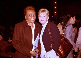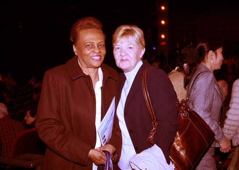 ![]() 凯撒宫商场客户服务中心经理达琳(Darlene Van Oster)(右)和负责客户服务的员工Peggy Clayton(左)赞叹晚会。达琳表示,我们西方的舞蹈只是舞蹈,里面没有故事。而这台晚会则不同,舞蹈里面有一种纪律、自律,背后的故事很精彩。这是和西方舞蹈最大的不同。她说:“我们非常喜欢通过舞蹈告诉人们道理的方式。” |