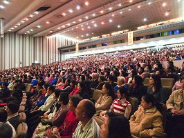 ![]() 将近七千五百位来自台湾各地的法轮功学员,齐聚台中市中兴大学惠荪礼堂,举行一年一度的修炼心得交流大会,法会现场庄严肃穆 |