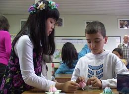 讲述完了法度的故事,学员教孩子们折叠莲花,告诉他们莲花在中国代表了一个人的高贵品格,出淤泥而不染,希望这些孩子们能把他们听到的告诉更多的人,以及他们的父母,让更多的人伸出援助之手,制止这场迫害,让更多无辜的孩子再也不要象法度一样受苦。