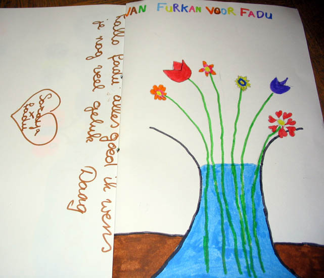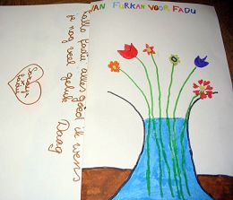 玛尔琳老师介绍说,在这一星期里,她每天都利用一些时间讲述法度的故事,还让孩子们画一张画给法度,让她知道比利时有很多的孩子关爱着她。玛尔琳老师说:“我认为孩子们一定会从中学到东西,在她们(法度和妈妈)来之前孩子们已经知道法度的故事了,他们很感兴趣,非常同情法度和她的妈妈。我确信他们会从中得到不同的价值观。对于孩子所遭受的痛苦,我认为,孩子们会比成人有更多的感受。这就是我为什么要组织这次活动的原因。”