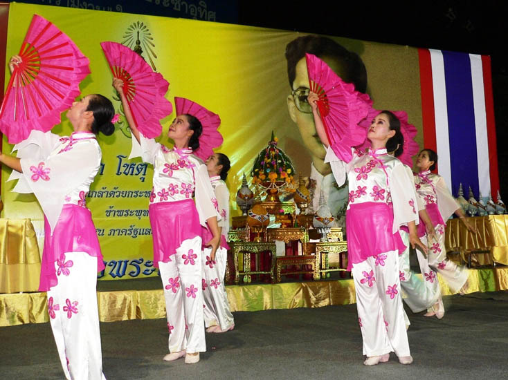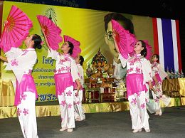 【明慧网二零零七年十二月六日】二零零七年十二月五日,是泰王八十华诞和万寿节,泰国举国欢庆。法轮功(又称法轮大法)学员参加了当地举行的庆祝活动,表演了精心创作的节目,展示大法的美好和修炼者的风貌,成为演出中最受欢迎的明星队伍。