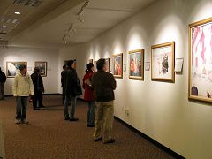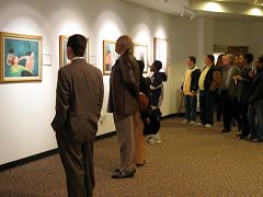 一月三日至三十日的画展吸引了许多参观者,被画中所体现的精神和内涵深深打动的民众纷纷询问画家是否在现场,希望当场请教。当得知所有画家都是法轮功修炼者时,他们都感到佩服。