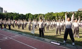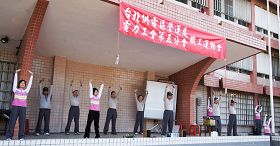 【明慧网二零零七年二月十日】台湾电力公司的台北供电区营运处电力工会第五分会,二零零七年二月七日在景美国中举办职工运动会,会中由在台电任职的法轮功学员上台炼功,当天参加的有三百多位台电员工学习第一套功法--佛展千手法。