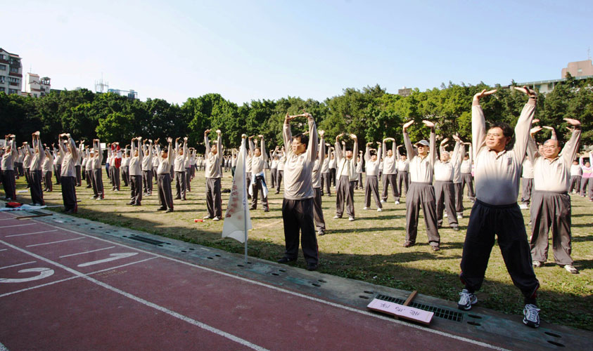 台湾电力公司的台北供电区营运处电力工会第五分会运动会上表演与教授法轮功第一套功法