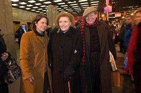 奥斯卡和金球奖双料影后派翠莎•尼尔(中)、及纽约百老汇著名演员乔尔•威格(右)对晚会赞赏备至。