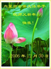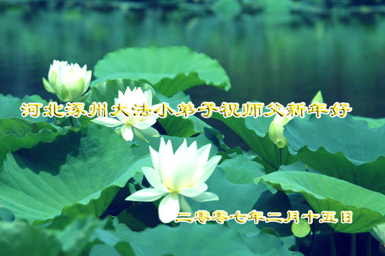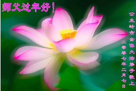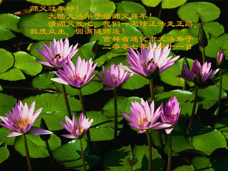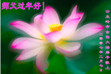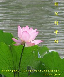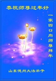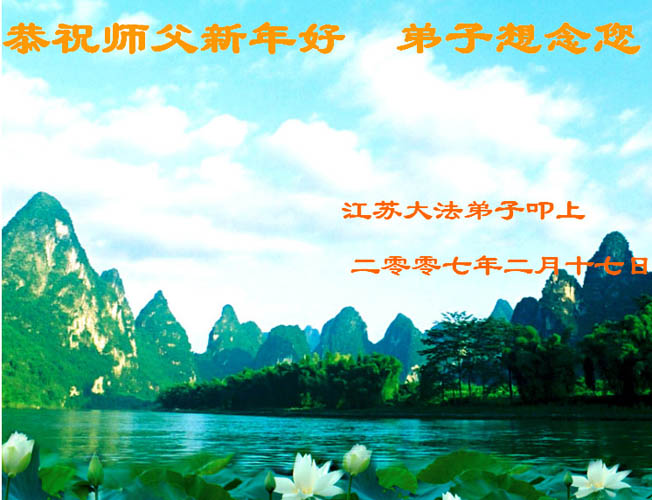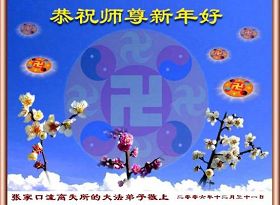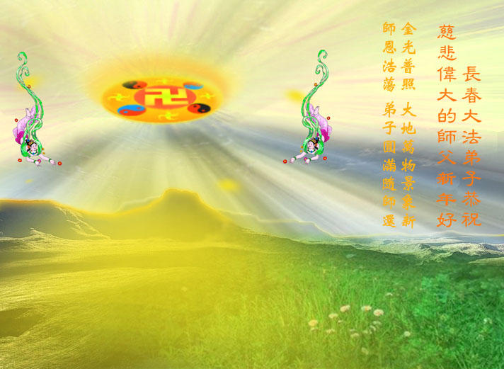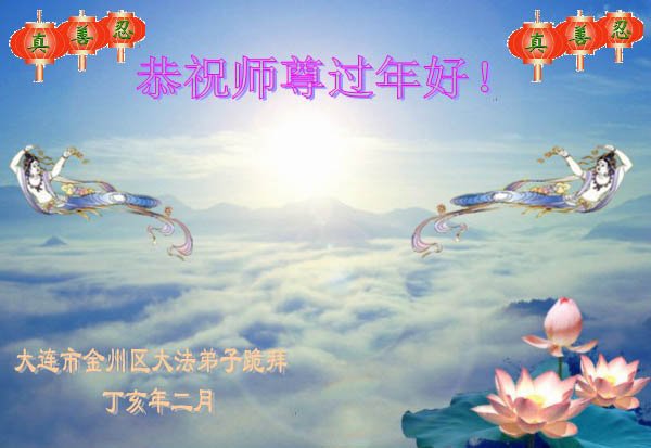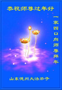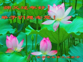 师父:您好!在此新春佳节来临之际,谨代表大陆新闻系统大法弟子叩拜慈悲伟大的师尊:师父过年好!师父辛苦了!大陆大法弟子想念您!盼望和师父团聚的那一天!我们一定做好三件事,不辜负师父的慈悲救度!