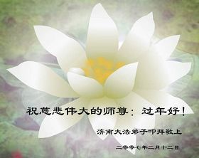 我代表济南军区的大法弟子及家人祝慈悲伟大的师尊新年快乐!