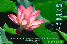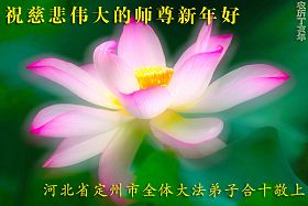 河北省煤炭系统部份大法弟子代表河北省内的开滦、峰峰、邢台、井陉、兴隆矿务局、邯郸煤矿设计院、邢台煤炭研究所、河北煤田地质局、煤田地质队、物测队、原河北省煤炭厅、石家庄煤矿设计院、(涿州市内)煤田地质局、物探研究院、邯郸市、邢台市、石家庄市(主要是井陉县)、保定市(曲阳县、涞水县等)、张家口市(蔚县、张北县等)、唐山市、承德市等地煤矿系统大法弟子,以及邯郸矿院、石家庄煤校、唐山矿院教职工及学生大法弟子、所有河北省内与煤炭相关职业的大法弟子,向我们的尊师拜年:师父,新年好!