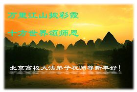 在中国传统节日过年到来之际,我们吉林高校全体大法弟子向师尊问好。在正法最后时刻我们要坚定正念,越最后,越精進,讲清真相,广传“九评”,救度众生,不负师尊的期望。