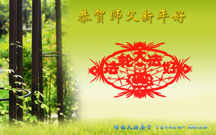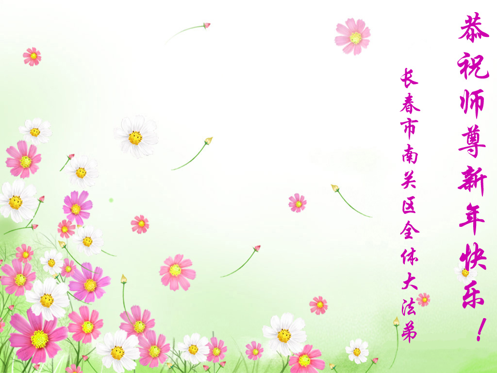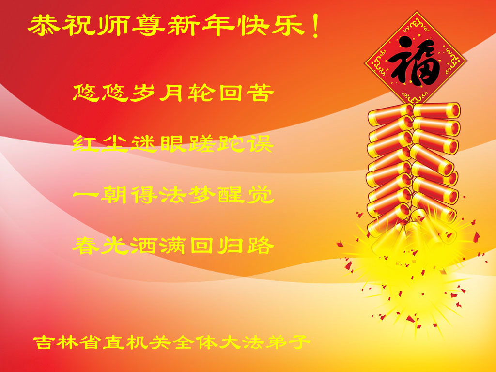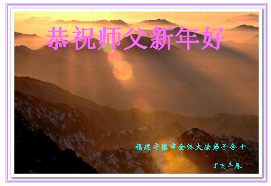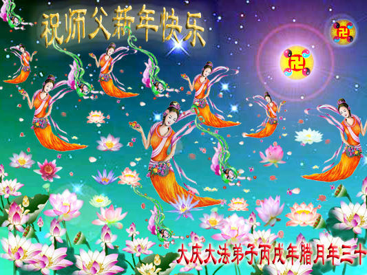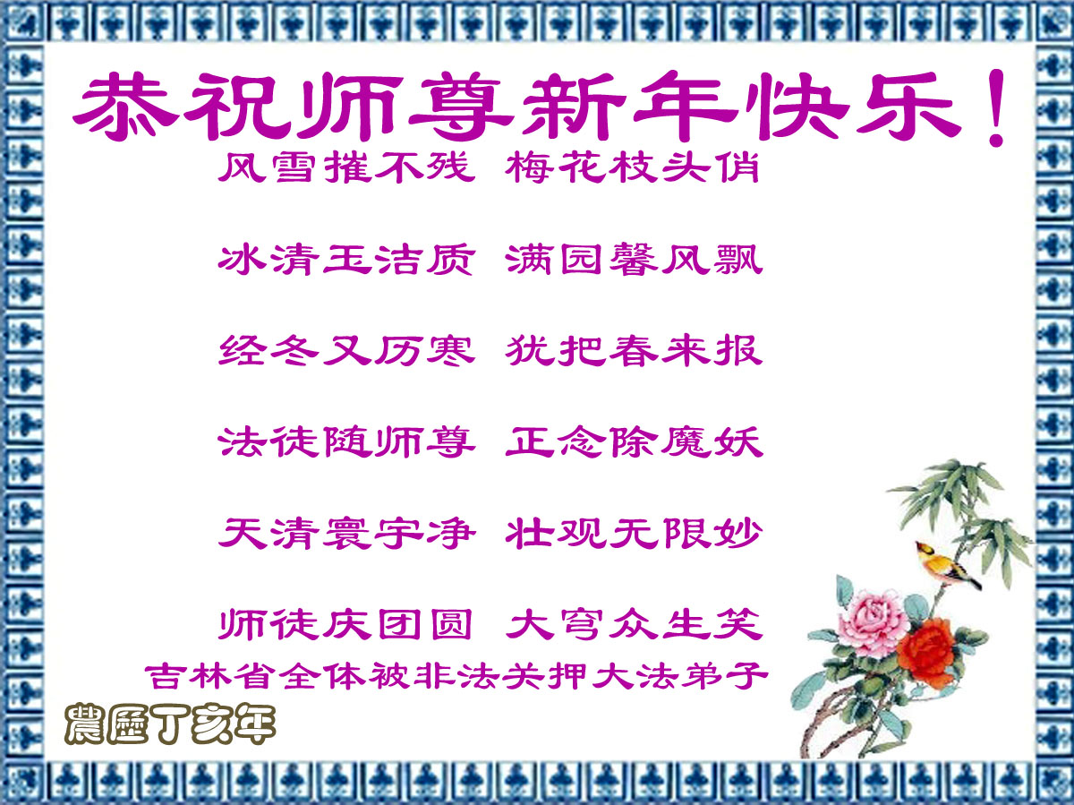 辽宁葫芦岛龙港区望海寺全体大法弟子、大庆市采油四厂全体大法弟子、渤海石油大法弟子、中原油田大法弟子、大陆特种设备安全监督检验行业新老大法弟子、克山农场大法弟子、黑龙江省庆丰农场全体大法弟子、北京一名律师大法弟子、大陆金融系统大法弟子、内蒙古满洲里医药行业大法弟子、广东邮政大法弟子、大陆发电厂大法弟子、湖南省湘潭电力系统大法弟子、黑龙江省牡丹江农垦855、858、856、857、庆丰农场等单位中全体大法弟子、广东梅州市各机关宿舍家属大法弟子、江西卫生系统全体大法弟子、山东省邹城北宿煤矿全体大法弟子、西安市全体医务人员,山东淄博水利局大法弟子、山东兖矿集团全体大法弟子、山东省济南市中区邮电大法弟子、河南濮阳暨中原油田大法弟子、天津大港油田大法弟子、大法小弟子,黑龙江省建三江管理局全体大法弟子,山西大同矿务局大法弟子,山东曹县大法弟子,给师尊拜年,敬祝伟大的师尊新年好!
