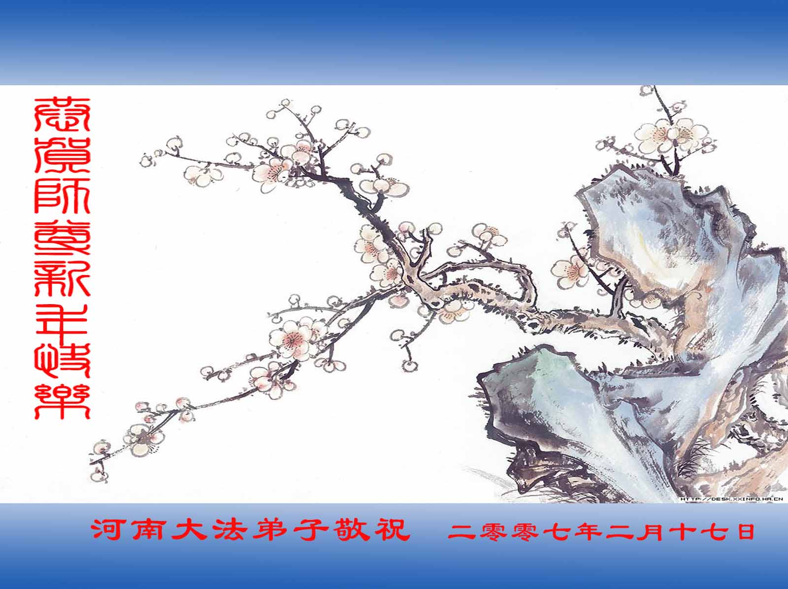 党校大法弟子、北京国家机关公务员大法弟子、浙江省行政机关大法弟子、西安市新闻、政法、高教、卫生系统的老年大法弟子、驻河北廊坊中省直单位大法弟子、中国大陆政府机关的大法弟子、天津政府机关大法弟子、河北张家口全体政府机关公务员大法弟子,敬祝伟大的师尊新年好!