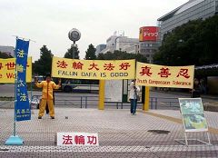 这两天正值中国的传统新年,名古屋的中领馆在市中心荣的久屋广场(Hisaya Hiroba)举行第一届中国新年庆祝活动。法轮功学员借此机会向日本民众和在日中国同胞洪法讲真相,除了在繁华街道边上打出横幅、放置看板并做功法演示,还在通往中领馆活动的出入口附近发新唐人全球华人新年晚会的介绍传单,并向大陆同胞传《九评》、劝三退。