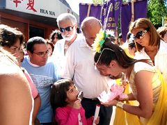 园游会前一天中共驻阿根廷大使到中国城,法轮功学员在大使上车时要送一个莲花时,被旁边的一向对法轮功学员不友善的四个和中共有生意来往的阿根廷华侨用恶劣言语侮辱并且野蛮的用手臂推撞。这几个人向来把每星期在中国城发传单、报纸的法轮功学员当眼中钉。 中共大使也曾经和商家开会,唆使中国城的商家不准法轮功学员在人行道摆放真相展板及发放揭露中共暴行的资料。中共误认为外国的街道是天安门,只要它们不喜欢的就可以赶、殴打、或逮捕。事后几个过路的阿根廷证人很气愤的表示,中共统治中国的暴行不可以拿到阿根廷来,并且都说那几个大骂法轮功学员的中国人的流氓行为败坏了中国人在阿根廷的形像。