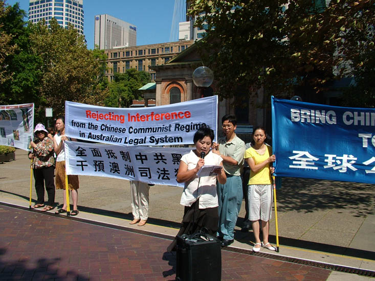 纽省法轮佛学会主席约翰戴乐在新闻发布会上表示,澳洲最大的报刊之一《澳洲人报》曾撰文表示中共为了阻扰诉讼案顺利进行,中共大使傅莹曾多次亲自前往堪培拉的外交贸易部,上下施压,企图通过经济、外交各种途经给澳洲政府施压,取消此案。前中共外交官陈用林也曾披露澳大利亚外交部在该诉讼案中私自给中方法律建议和帮助。