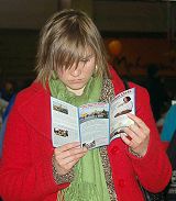 学叠纸莲花的人们络绎不绝,学员告诉他们:法轮功学员亲手做的莲花象征着纯洁、坚贞和美好,希望把真善忍的美好带给全世界,也希望人们记住法轮大法好而拥有美好的未来。有位教师明白了大法真相,表示会讲给班上的学生。
