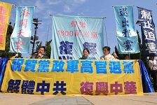 手中拿着真相特刊的阿伯,对着游行队伍竖起大拇指说:“我支持你们,你录这些相片,我回大陆它会抓我,江××抓我,我们给它(中共)迫害了几十年了,四九年就迫害到现在,坏得很!”他更兴奋的支持退党大潮,一千八百万人退了还不够,“最好是两千万!三千万!”