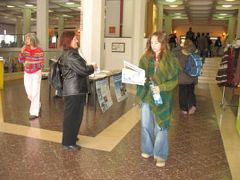 大厅里陈列着的展板向人们揭露着中国共产党在过去七年多时间里在中国对法轮功学员所施加的迫害。这些照片所揭露出的迫害事实令人触目惊心。而中共活体摘取法轮功学员器官以牟取暴利的罪行更是让许多大学生震惊的目瞪口呆。了解了真相的人们纷纷在抗议书上签名,呼吁制止中共的暴行。