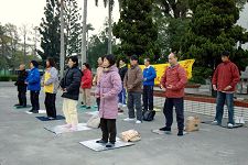 每天都把五套功法完整炼好,无论刮风下雨一直坚持下去,走过了五个多年头。因为法轮大法是宇宙大法,强调心性的提升。周末炼完功后,学员们会一起学法交流。通过学法与交流,每个学员都更加的认识这部大法。在这里炼功的学员来自各行各业,其中有一位老年学员,今年七十二岁,得法已近七年,刚开始她完全不识字,经过不断的学法,现在会看书还会背书,不但如此还会上网讲真相呢!