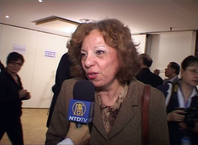 “为了人权而行动”的主席弗朗索瓦兹•兰佩蒂女士(Marie-Francois Lamperti)提到,我们对中国不了解、对中国历史不了解的,在这场晚会中都让我们了解了,同时也带给我们中国各地区不同的文化,非常的感人,非常的美好,因为她(晚会)带给我们的是现在在中国已经没有的精神境界的东西,是非常可贵的。她说对节目中印象最深的是《创世》中天上下来的佛转生成皇帝的时候,那个场面让她很震撼。