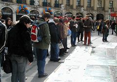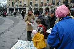 一天当中有不少来自中国的旅游者和留学生路过卡尔斯广场,他们中不少人认真的看揭露中共暴政的展板,并很认真的跟法轮功学员交换意见。有些华人认为家丑不可外扬,法轮功学员郑重的告诉他们,揭露中共这些邪恶的行径是为了在全世界曝光罪恶,让正义的力量去制止中共继续虐杀法轮功学员,目地不是为了推翻中共的政权,而是让中国和全世界更多的民众觉醒,摆脱中共的欺骗和毒害,旨在挽救中国同胞,使中国人不会在“天灭中共”之际为其陪葬。一些明白了真相的人当即填写了退出中共的声明。