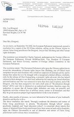 信中还表示,欧洲议会副主席爱德华•麦克米兰-斯考特先生去年八月二十六日参加了由香港大纪元时报与香港退党服务中心主办的声援一千三百万人退出中共的集会,并且宣布加入“法轮功受迫害真相联合调查团”。