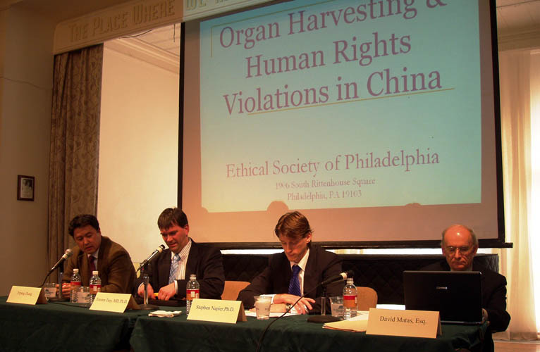 纽约亚洲研究会执行主任张而平向听众介绍了法轮功的基本情况,以及中共近八年的持续迫害。“美国医生反对活摘器官联合会”代表托司顿•萃(Torsten Trey)博士提供了该组织自己进行的一系列调查。他指出,中国一个城市的一个医院所做的器官移植手术,就比整个德国的手术还多。一个中国人在反驳托司顿•萃的论点时说,中国人肝炎特别多,所以器官移植多是正常的。而托司顿•萃指出,这个说法恰恰说明,中国人因为肝炎病患多,合格的肝脏应该不足,做这么多移植恰好是不正常的。美国天主教医学道德中心主席约翰•哈斯(John Haas)博士介绍了美国器官移植的一些基本原则、假定、和实施的严苛标准,以保证不致滥用。