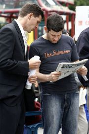 ![]() 瑞典民众主动来了解三退信息,并表示支持 |