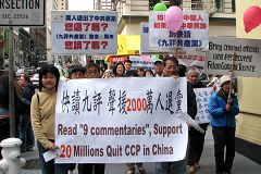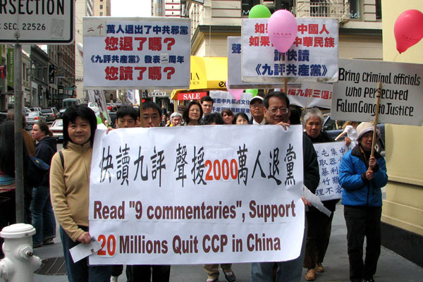 集会首先于上午十一时在旧金山市中心联合广场举行,中午十二时三十分,参加集会的人士沿着旧金山市的主要街道,游行至华人聚集的中国城花园角广场,举行中文集会。参加集会发言的人士以英文发言。自从九评共产党社论于二零零四年发表以来,中国人退出中共的浪潮也引起了西方主流社会的关注。