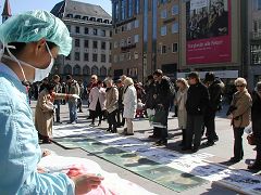 在活动过程中,有一对情侣逗留了将近两小时。女孩来自中国大陆,受中共的毒害颇深,身为德国人的男友直着急,他力劝女孩放弃对法轮功的偏见,希望女孩能和他一道去签名反迫害,女孩就是不答应。男孩苦口婆心的从老子、孔子讲到中共对文化的破坏,希望女孩能了解中共的邪恶。记者见到他们俩时,那男孩正急的直跳脚,问女孩为什么一提到中国的阴暗面就不能接受,就认为是反对中国,为什么、为什么?!