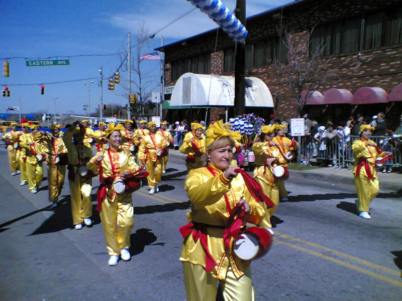 这是当地法轮功学员首次应邀参加希腊社区的游行庆祝活动。由大法弟子组成的腰鼓队和身着色彩亮丽的中国传统服装的仙女队参加了这次游行庆典。