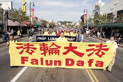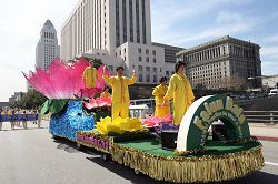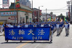 游行途经唐人街时,不少华人都拥到人行道边,有的看着队伍微笑,有的赞叹游行队伍的整齐美好,了解真相的人纷纷谴责中共暴行。天国乐团和大莲花花车很受欢迎。来自香港的华侨曾女士说,自己很喜欢音乐,特别喜欢天国乐团的美妙音乐,她希望能有机会参加乐团。“游行太美了,我希望多了解他们,了解法轮功。”