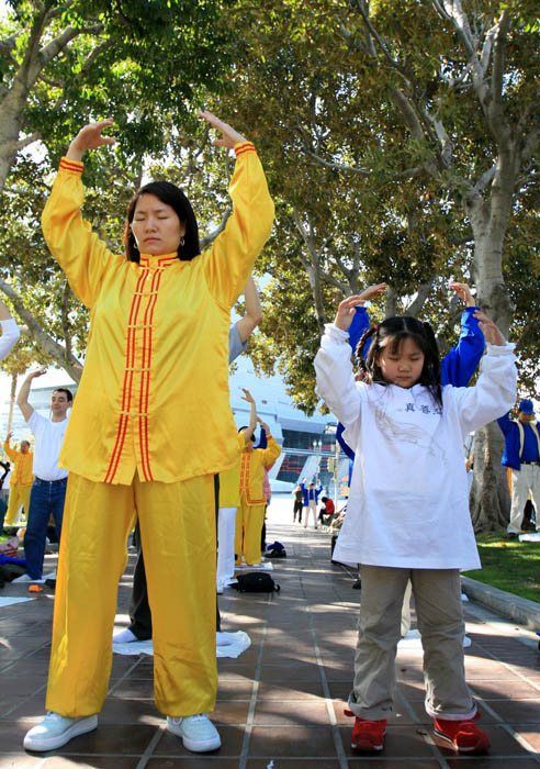![]() 台湾法轮功学员组成的炼功队 |