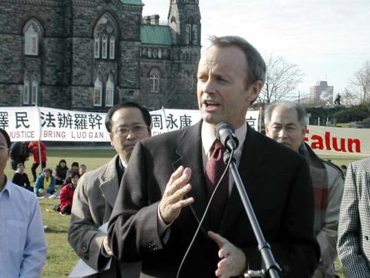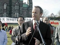 ![]() 加拿大公共安全部长斯铎克威尔-德在支持法轮功的集会上发言 |