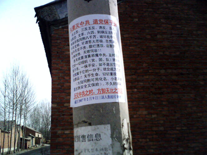 • 图片:河北三河市大年前后出现大量退党标语,标语遍布各村庄及市区