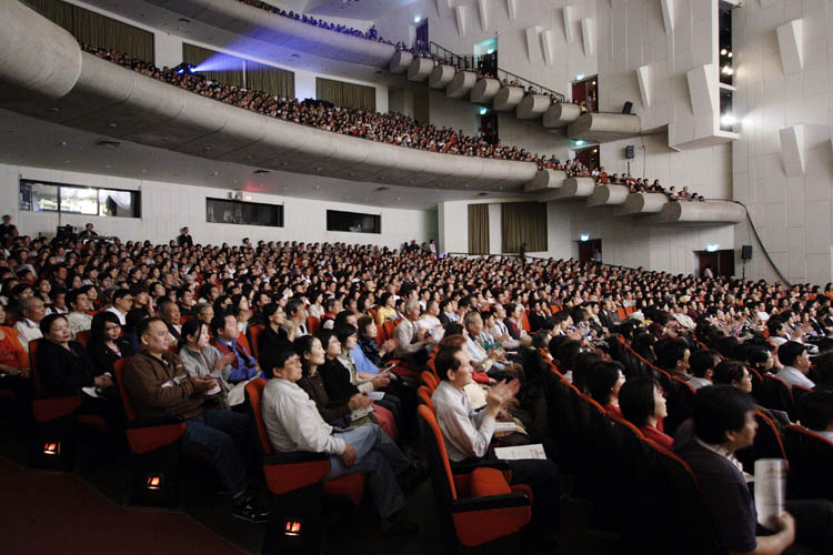 【明慧网二零零七年四月十日】(明慧记者台南报导)美国神韵艺术团全球巡回演出售票盛况以及观众的热烈反应轰动全世界。七十多场演出,其精彩绝伦的神韵内涵,令人叹为观止。在台湾,首三场台北的演出已经圆满落幕,巡回演出的第二站来到有文化古城之称的台南。四月九号星期一晚上,神韵艺术团在台南市文化中心隆重登场,受到南台湾民众热烈欢迎,还有邻近的县市高雄、屏东等地民众包游览车前来观赏表演。创下南台艺术表演史上罕见的盛况。