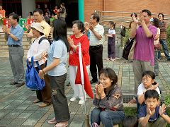 这几次的表演,都是在平常日的晚间或是需要小弟子在非常早起的情况之下演出。像是三月一日星期四,腰鼓队的小弟子在读完整天的学校课程四点钟放学后,就必须放下书包,马上由北县各地家中赶赴台北市新生北路,齐聚参加当天晚间七点由「银发族协会」举办的晚会演出。在一百多位的银发族长辈专注的眼神中,超过三十位的小弟子为他们击鼓表演,现场观众莫不报以热烈的掌声,也对法轮大法产生浓厚的兴趣。