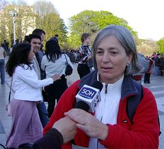 罗萨丽•罗利克斯•哒拉维拉(Rosario Rodriguez Talavera)女士是西班牙的一位生物教授,她说:「当我看到在持续的音乐中有六、七位(法轮功学员)祥和的坐在人权广场(Trocadero place)时我被打动了。我读到摆在那里的资料,并了解到(在中国正发生着的)从活人身上摘取器官的问题,令我感到不安。他们只因为炼一个名为『法轮功』的气功就被关在监狱里。」