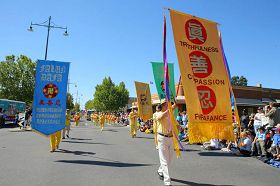 ![]() 法轮功学员的游行队伍多姿多彩,深受人们欢迎 |