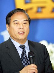 ![]() 中兴大学校长萧介夫欢迎国际一流的神韵艺术团抵达台中演出 |