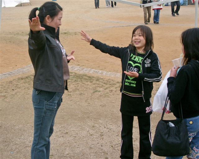 经过和他们交谈,学员了解到他们对法轮功真相已经很清楚了。那个眉清目秀的男孩子从中国来到日本,现在日本上中学,家住丰田。他说他看了很多资料和光盘,他要学法轮功,问在什么地方可以学,并要了许多中文的不同资料,要拿回家看。法轮功学员把在爱知县的炼功点和联系电话告诉了他,欢迎他去。