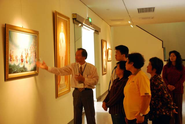 许多民众看了画作之后,都觉的心中有一种感动久久不去,一位导览人员为他们解释说:“创作这些作品的艺术家们修炼了法轮大法,就是一种按照宇宙特性‘真、善、忍’来性命双修的功法。他们修炼后得到身体的健康及思想的升华,进一步领悟了生命、宇宙的真谛,找到了对生命意义探索的答案,于是通过艺术表现手法,向人们展示了一条返本归真的道路”。