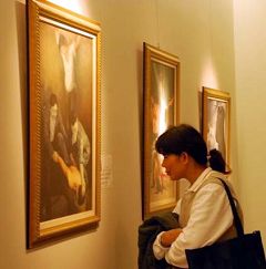 美展展场宽敞,环境清幽,这些天陆续不断有民众进来参观,主办人员向笔者表示:这些画作能让人体会修炼者天人合一的美妙境界,感悟善恶有报的真理,更让人确信正义必将战胜邪恶。