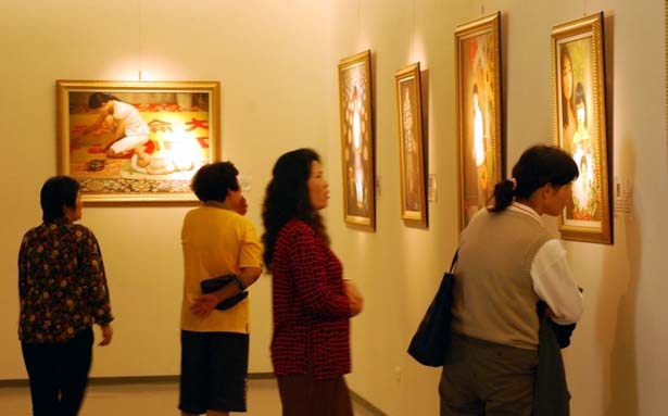 民众聚精会神的观赏作品