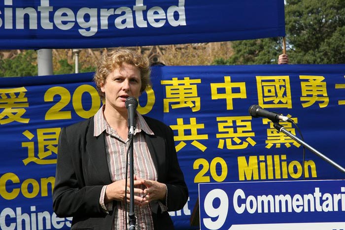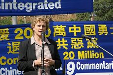 集会现场还播放了大陆人士退党电话录音,其中有一位女士的退党录音内容也相当发人深省:「没有共产党才有新中国,我觉的所有的中国人,你也许现在没有受到中共的迫害,也许你生活很安逸,或者是说你现在赚很多的钱,这都没有关系。但是,现在有很多人仍生活在中共的压迫之下。无论现在你有没有受到影响,但是你能做到的事情就是要站出来,我希望看到中共垮台,我从内心里是非常希望等到这一天。」