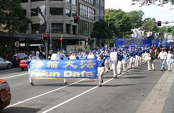 ![]() 法轮功学员组成的「天国乐团」在游行队伍中成为注目的焦点 |